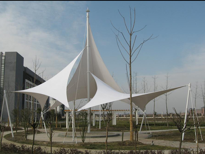 景觀膜結構又稱張拉膜景觀,主要通過膜結構的張拉式 呈現出唯美的結構特征;膜材料是指聚酯纖維基布或PVDF、PVF、PTFE等不同的表面涂層,配以優質的PVC組成的具有穩定的形態,并可承受一定載荷的建筑紡織品。它的壽命因不同的表面涂層而異,一般可達成10-20年;其外觀整潔大方,自潔性強。主要應用于各大公園,世博園,和一些廣場,商場等場所。